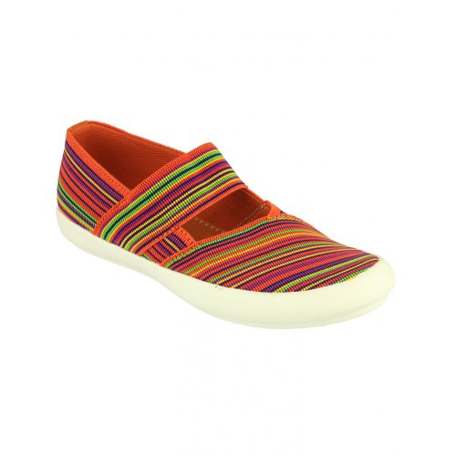 Ladies Elasticated Slip-On Shoe. Constructed with a Textile Upper. Comfortable Textile Lining. Other Materials Sole Unit. Slip-On Shoe with Elasticated Band. Striped Pattern on Upper and Toe.