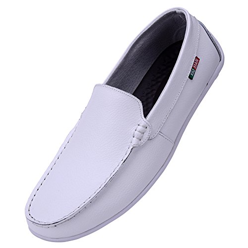 Best Seller! ODEMA Men's White Cowhide Leather Slip-on Loafers 8 UK Review